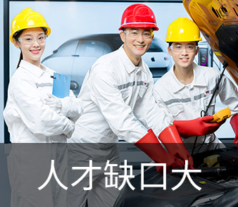 新能源与智能网联都属于时代发展总趋势,新能源汽车是中国汽车工业发展和转型的重点产品,“十一五”以来,国家采取了一系列对策重点推进新能源发展,中国市场新能源的产销占据全球市场50%以上,是名副其实的新能源汽车大国;同时据《中国智能网联汽车人才发展报告》显示,目前智能网联汽车人才总量预计不足2万人,而根据智能汽车汽车保有量/汽车技术服务人数按照50:1的保守估计,2020年新增智能汽车技术服务人才需求超过30万人!新能源与智能网联作为大势所趋,将会有巨大的人才缺口。